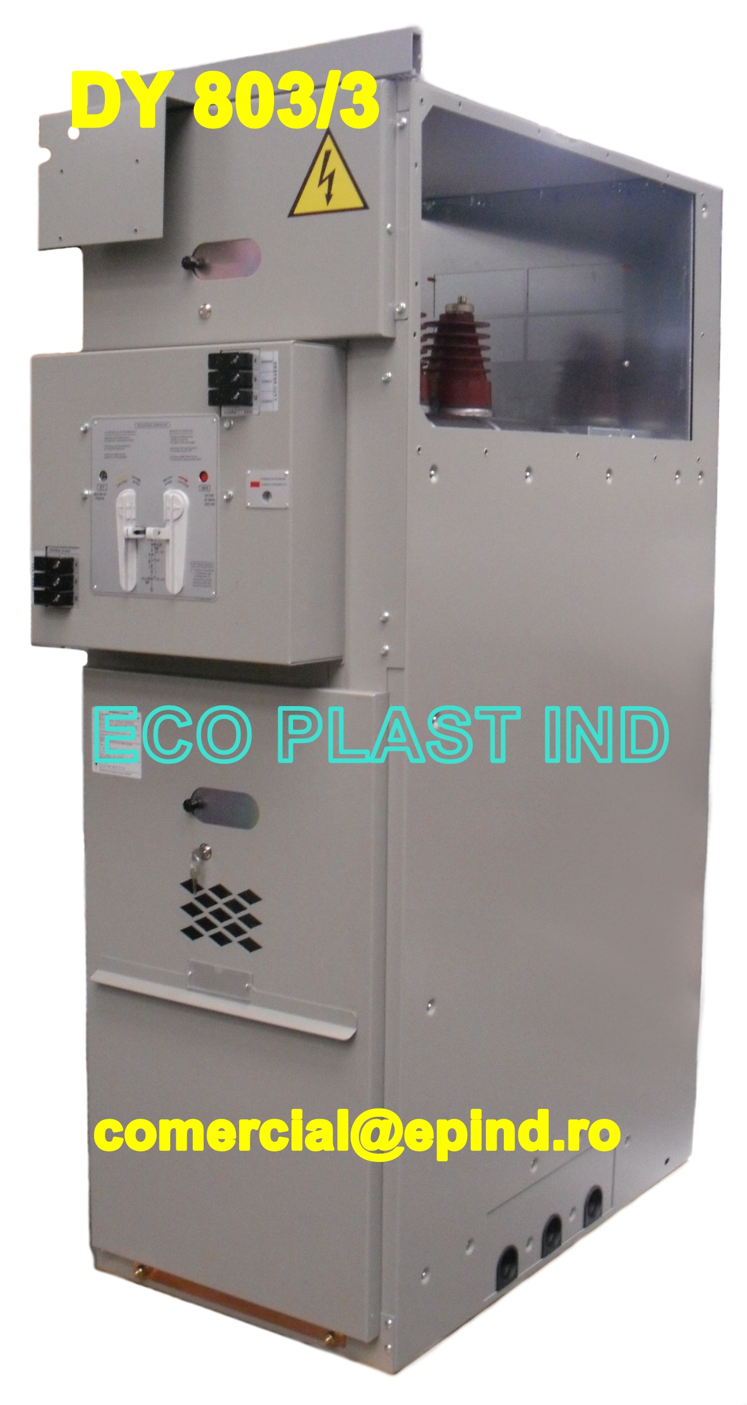 Celula de medie tensiune MT, aparataj prefabricat 24 kV in anvelopa metalica IMS izolat in SF6 comanda manuala, 24 kV, 16 kA, In = 630 A, dimensiuni 600x1050x1850 mm, tip T 162326 DY 803/3