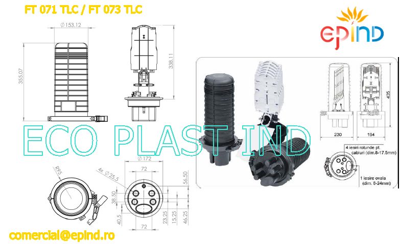 Cutie jonctiune fibra optica verticala FO (cilindrica), 4+1 intrari, 96 FO, SBN09-L5BR-96, 635117.5 conform FT 071 TLC si FT 073 TLC